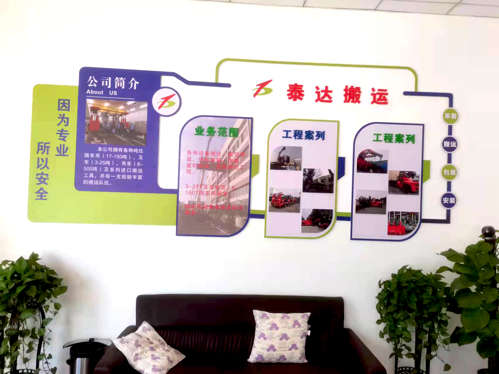 更多>>無錫泰達搬運有限公司是一家集起重、搬運、裝卸、定位安裝、運輸服務(wù)、機電安裝及包裝服務(wù)的專業(yè)公司,公司長期從事各類精密機器設(shè)備及超大、超重設(shè)備的搬運、安裝工作,積累了豐富的實際經(jīng)驗,能為您解決各類起重、搬運、安裝的疑難問題。公司下設(shè)有市場部、搬運部、安裝工程部、包裝部、吊機制造生產(chǎn)部。現(xiàn)經(jīng)營范圍遍及江蘇、浙江、廣東、安徽、山東、上海、天津等地能提供專業(yè)化的服務(wù)!